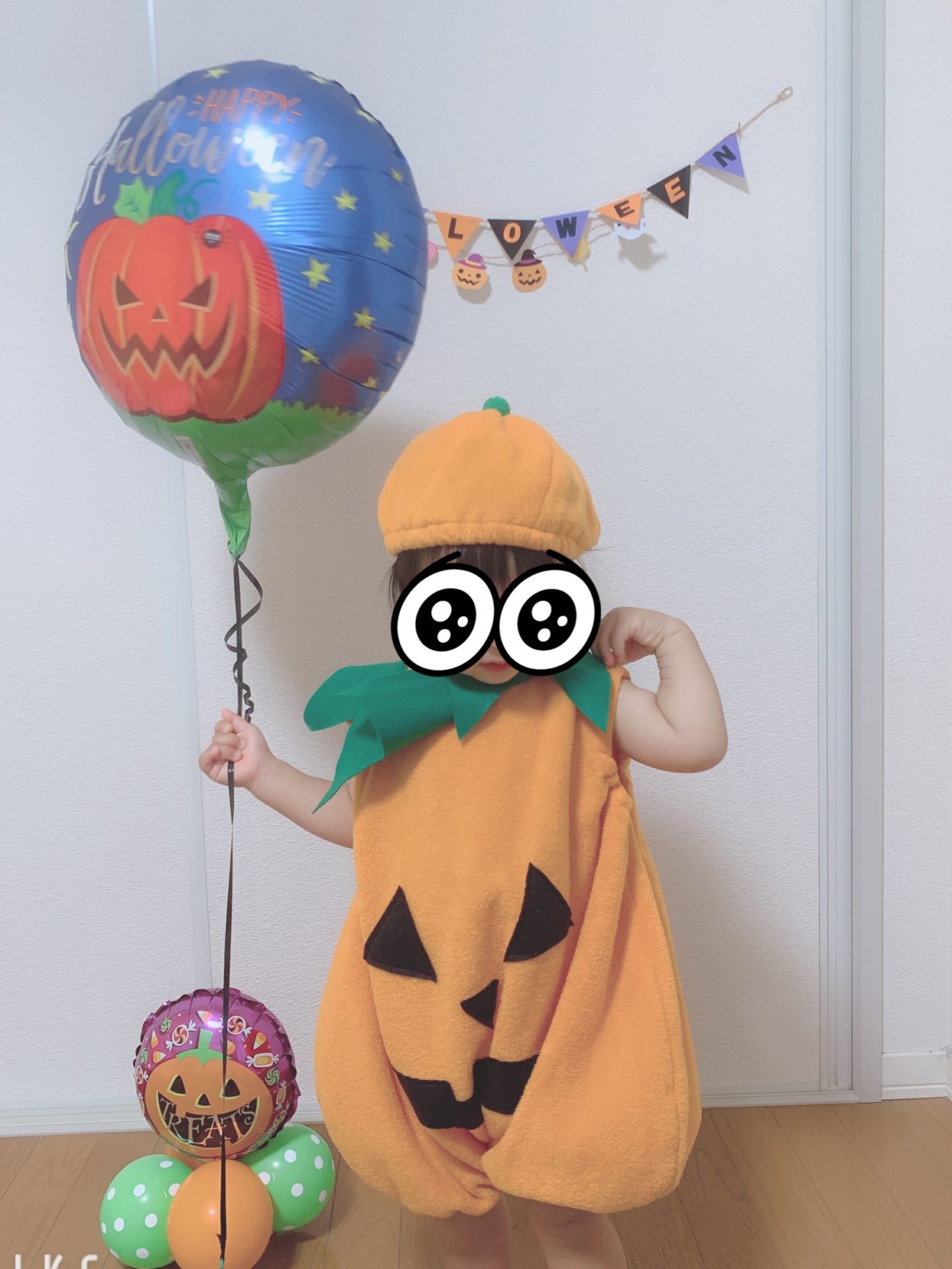 普段は嫌がる帽子も、このカボチャ帽子では被ってくれ、可愛さ倍増でした♡